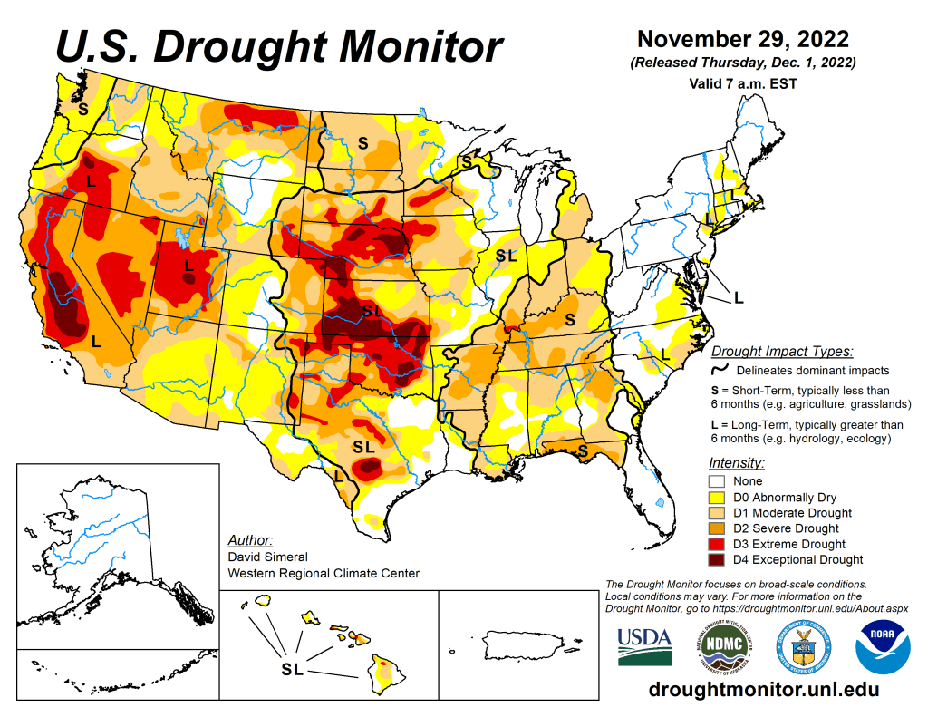 - Here is this week’s update on the USA Drought Monitor. Dry or drought conditions continue to persist across much of the contiguous USA with moderate to severe drought spreading from the Great Lakes region to the deep south.