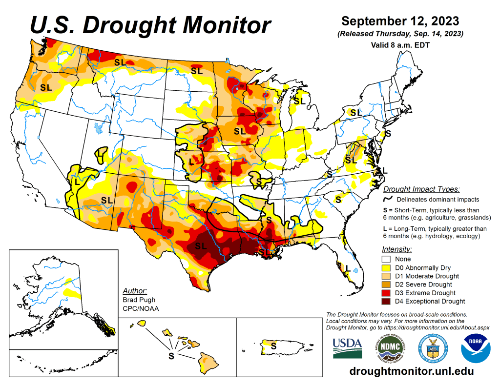 Greeting everyone. Thanks for stopping by. The major stories this past week have been Hurricane Lee, the first Atlantic hurricane to reach Category 5 status, the flooding on Lybia, and the earthquake in Morocco. As for the topical Atlantic, there are several more weeks left in the 2023 hurricane season. I will continue with hurricane preparedness information that you’ll find helpful. We’ll also take a look at the latest update of the US Drought Monitor. But first, this important caveat on weather information and social media.