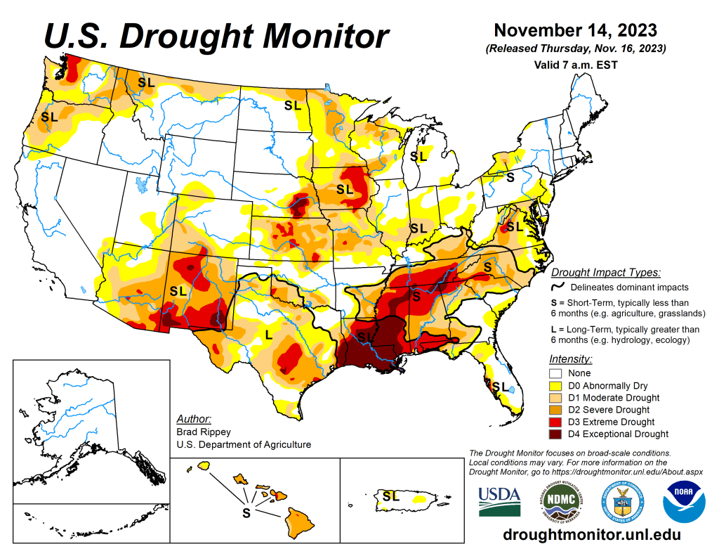 - Here’s the latest update on the US Drought Monitor. Conditions from Arizona through the deep south continue to worsen as has conditions in the central plains. For Hawaii, the severe drought conditions have persisted.