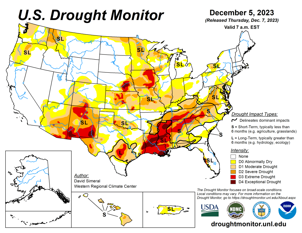 - Here’s the latest update on the US Drought Monitor. Conditions from Arizona through the deep south continue to worsen along with exceptional drought conditions in the central plains.