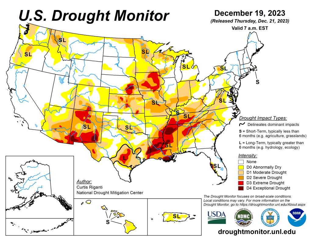 - Here’s the latest update on the US Drought Monitor. Conditions from Arizona through the deep south have been relatively stable along with extreme to exceptional drought conditions in the central plains.