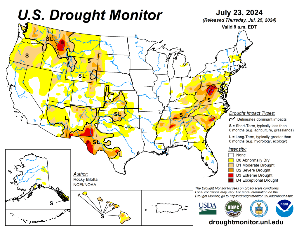 - Here’s the latest update on the US Drought Monitor. Substantial improvement has taken place across much of the contiguous USA. Drought conditions have worsened for parts of Kansas, Montana, New Mexico, Oklahoma, Texas and spread through the Mid Atlantic region and northern Rockies. The latest fire weather outlooks can be found at the Storm Prediction Center website where they are updated daily.