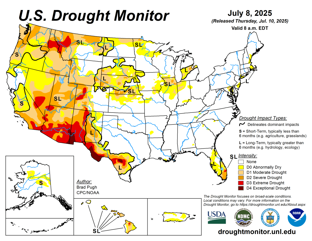 - Here’s the latest update on the US Drought Monitor. Across much of the contiguous USA, drought conditions have improved significantly across the east coast, deep south, and parts of the southern plains. The latest fire weather outlooks can be found at the Storm Prediction Center website where they are updated daily.