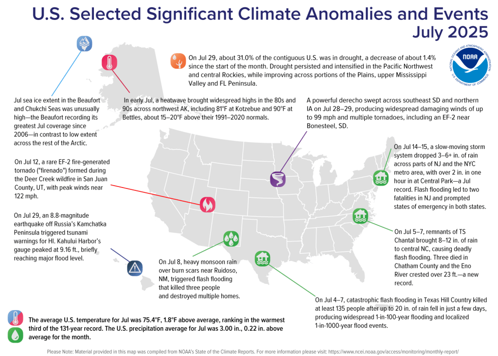 - In case you missed it, the Monthly Climate Report from NOAA is out for July, 2025. The deadly Texas floods, among other events, were front and center for the month.